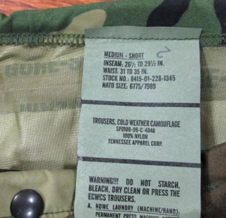 ´Trousers, Cold Weather, Camouflage´ in Goretex. Taglia: MS (50). Anno produzione: 1996.