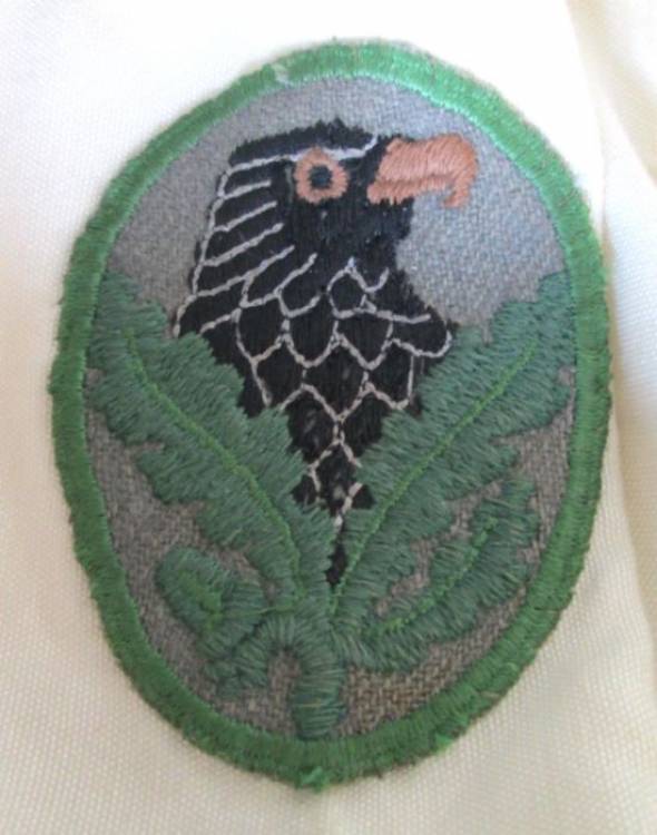 ECCEZIONALE ANORAK IN COTONE BIANCO DELLA HERMANN GOERING DA ALPINO/SCIATORE CON AQUILA DA UFFICIALE E RARO DISTINTIVO DA FRANCO TIRATORE (3^ Classe). CONDIZIONI PARI AL NUOVO.