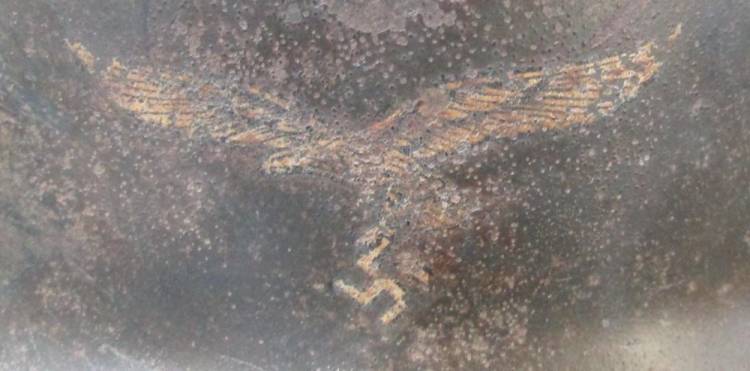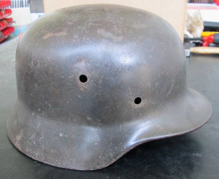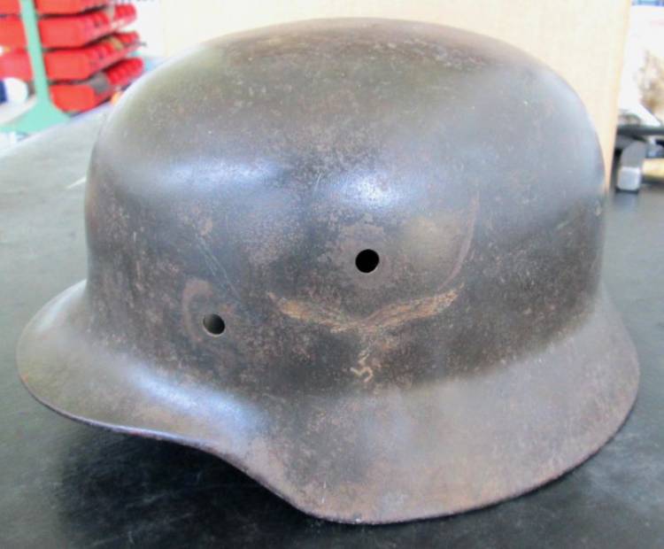 ELMETTO VISSUTO DELLE TRUPPE COMBATTENTI A TERRA DELLA LW. VERNICE VERDE, MONODECAL. SOLO GUSCIO.