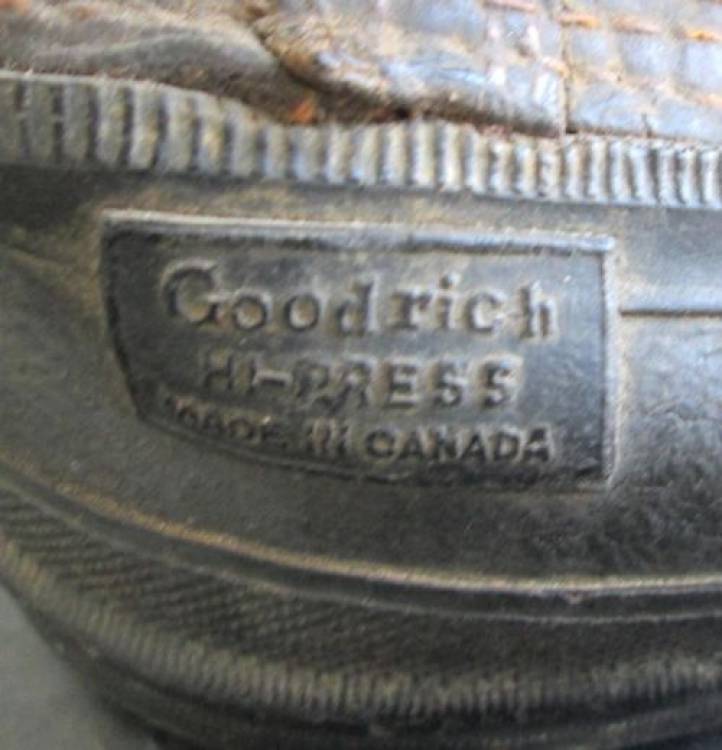 IN CUOIO MARRONE E GOMMA. CONDIZIONI MEDIE. MARCATE ´GOODRICH HI-PRESS MADE IN CANADA´.