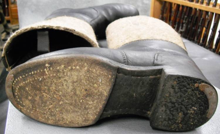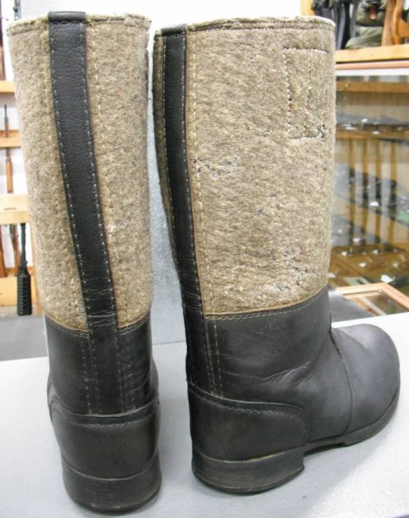 IN FELTRO GRIGIO E CUOIO NERO. NUMERO GRANDE (NON PIU´ LEGGIBILE), A OCCHIO UN 44. PORTATI MA IN OTTIME CONDIZIONI. ORIGINALI BELLICI WEHRMACHT.