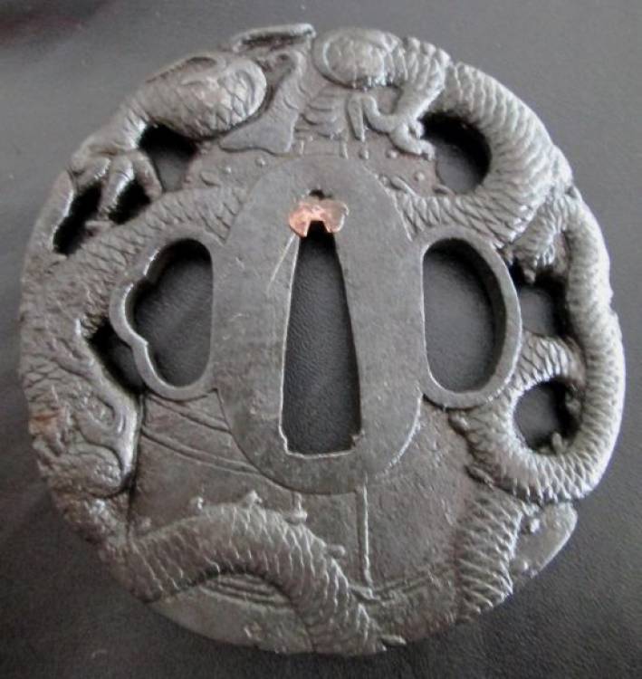 Drago che esce da campana. Periodo Kanbon Shinto.