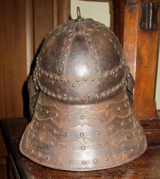 ELMO DA UFF. DI CAVALLERIA CHIAMATO ´TASCHETTO A CODA DI GAMBERO´ E DETTO ´ALLA UNGARA´ PER LA RICCA ELABORAZIONE. DUE PUNZONI SULLA LAMA DI FALDA INFERIORE, DI AREA GERMANICA (SOLINGEN). EPOCA: SEC.XVII.