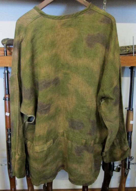 SPLENDIDA E RARISSIMA SPLOLVERINA DA SNIPER DELLA WH IN DRILLICH PESANTE IN MIMETISMO SFUMATO REVERSIBILE COLORE NATURALE. CONFIGURAZIONE PRIMO MODELLO SENZA CAPPUCCIO E RETINA.