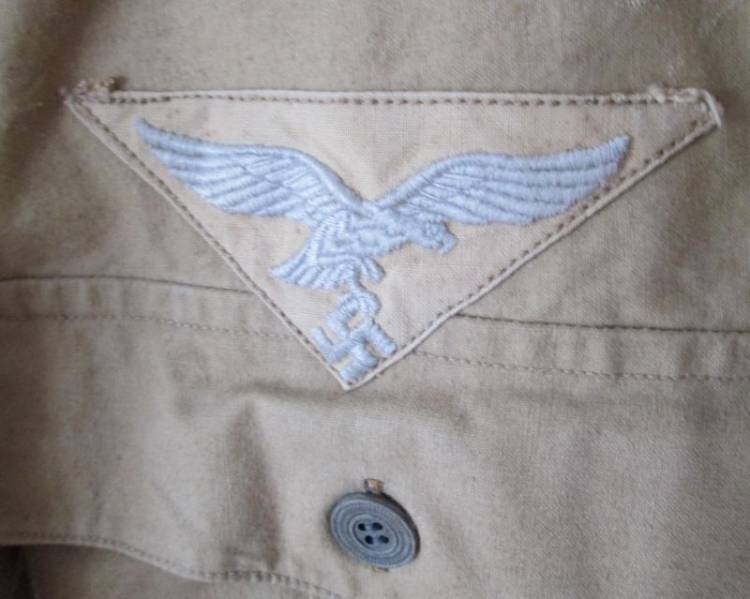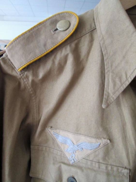 RARA CAMICIA TROPICALE DI II TIPO CON AQUILA E SPALLINE FJ TRUPPA. TUTTA APERTA SUL DAVANTI CON QUATTRO BOTTONI IN CARTONCINO PRESSATO. NON PREVEDE BOTTONI SUL COLLETTO.