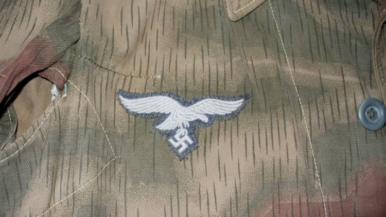 GIACCONE MIMETICO DA LANCIO/COMBATTIMENTI A TERRA DELLA FD, USATO ANCHE DAI FJ. COMPLETO DI AQUILA E SPALLINE DA UFF. FJ.