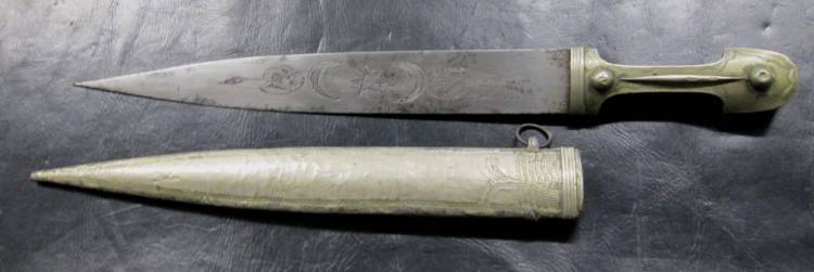 TUTTI I FORNIMENTI IN ARGENTO (BASSO TITOLO). LAMA CON INCISIONI E MOTTI SU ENTRAMBI I LATI.