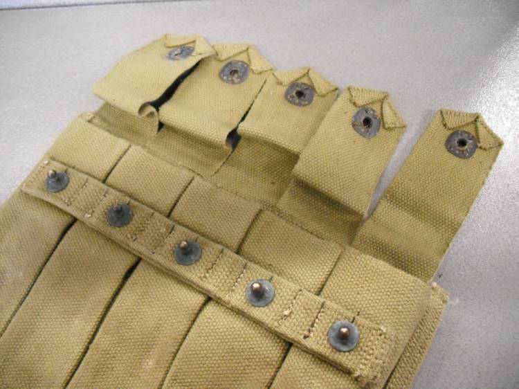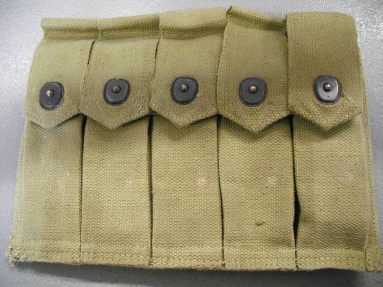 PER SERBATOI DA 20 COLPI PER FUCILE MITRAGLIATORE THOMPSON. IN CANAPA VERDE OLIVA E BOTTONI DI CHIUSURA IN METALLO. CONDIZIONI PARI AL NUOVO.ORIGINALE II GUERRA MONDIALE