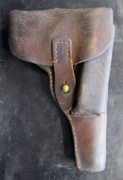 Fondina per Pistola Browning 10/22 del tipo standard belga utilizzata e punzonata dalla WH in cuoio marrone. Condizioni buone.