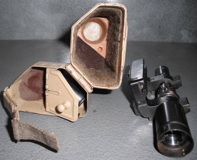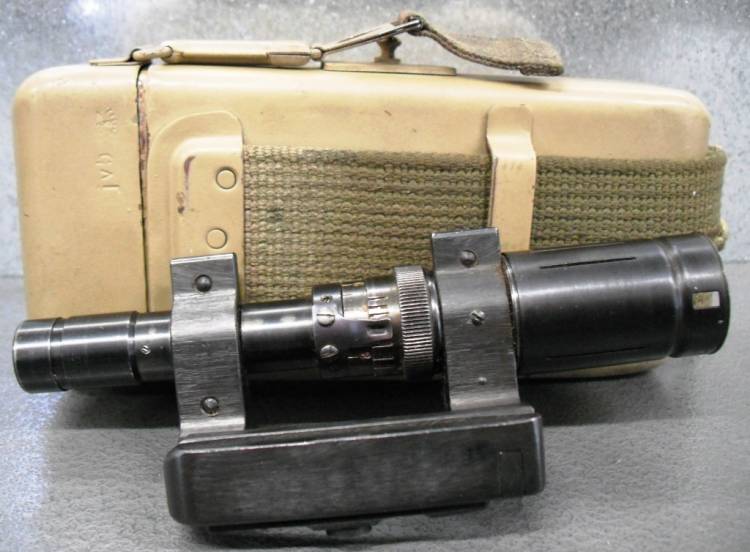 OTTICA IN CONDIZIONI SPLENDIDE, LENTI E RETICOLO LIMPIDI. CUSTODIA COMPLETA DI FELTRO E SPESSORE IN LEGNO ALL´INTERNO. VERNICE GIALLO CONTINENTALE. OTTICA E CUSTODIA TUTTI MARCATI CON WaA. TUTTO ORIGINALE II GUERRA MONDIALE.