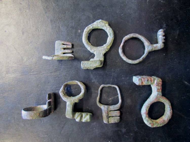SETTE ANELLI IN BRONZO A FORMA DI CHIAVE CON