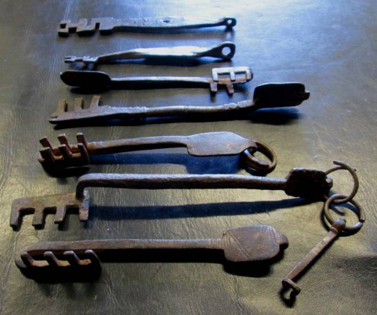 SETTE CHIAVI IN FERRO DI DIVERSA TIPOLOGIA DI AREA MEDITERRANEA.