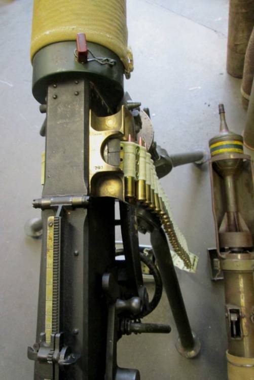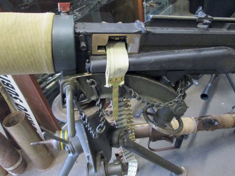 SPLENDIDA MITRAGLIATRICE VICKERS INGLESE DELLA I E II GM. COMPLETA DI TREPPIEDE, NASTRO, MUNIZIONI (INERTI), SCATOLA PORTANASTRO.