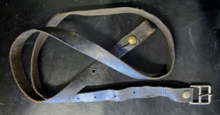 RARA CINGHIA IN CUOIO TINTO NERO PER PISTOLA MITR. TZ.45 PRODOTTA SOLAMENTE DALLA FINE DEL 1944. ROTTURA PERFETTAMENTE RESTAURATA.