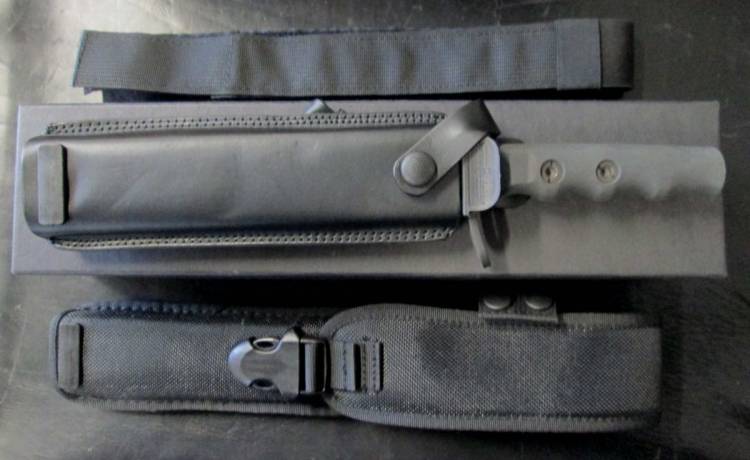 PUGNALE DELLA EXTREMA RATIO PERSONALIZZATO CON FASCETTO E ´IRRIDUCIBILE´. IMPUGNATURA IN GOMMA. DUE FODERI, IN CORDURA E IN CUOIO.