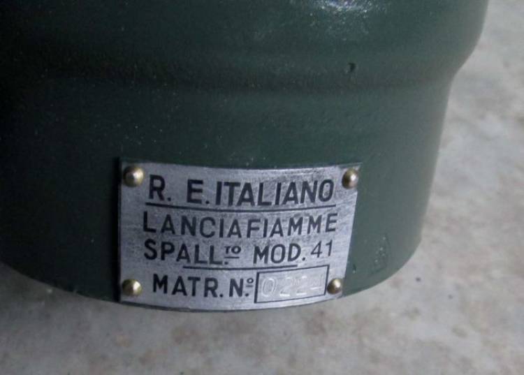 COMPLETO DI CINGHIE DI TRASPORTO. MARCATO ´R.E. ITALIANO - LANCIAFIAMME SPALL.TO MOD.41 - MATR.