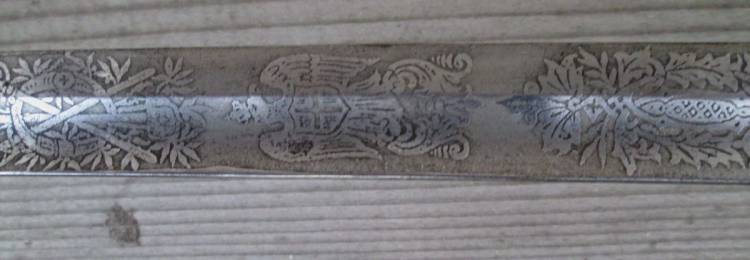 BELLA SPADA DA UFFICIALE DI FANTERIA REI CON LAMA INCISA E SOSPENSIONI. CONDIZIONI MOLTO BUONE.