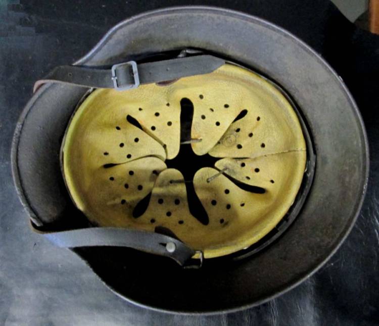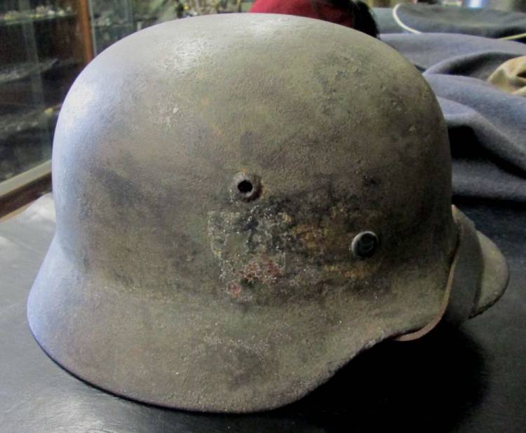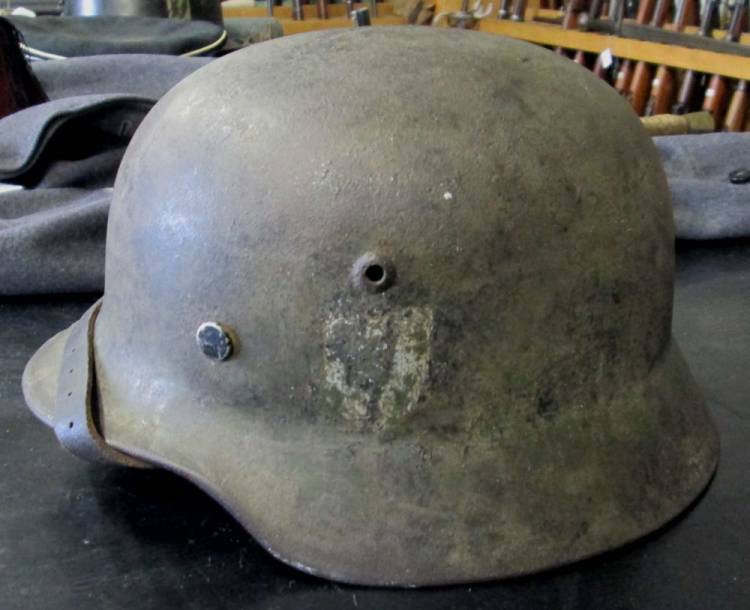 ELMETTO ESERCITO TEDESCO MOD.35 BIFREGIO CON VERNICE ZIMMERIT MIMETICO SFUMATO VERDE-MARRONE.