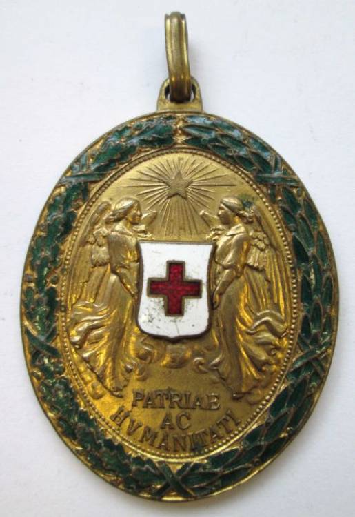 Bel distintivo della Croce Rossa austriaca coniato per il cinquantennale della fondazione. Condizioni molto buone.