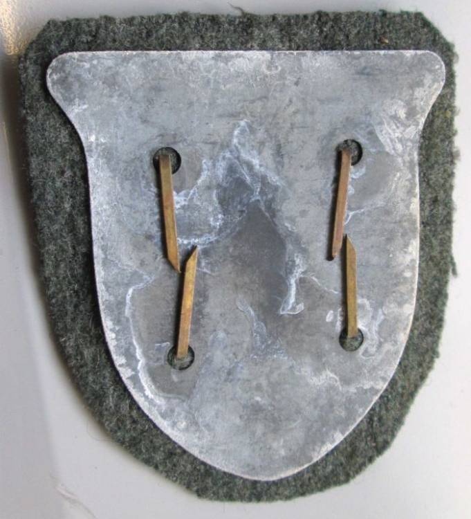 SCUDETTO DA BRACCIO CONCESSO PER LA PARTECIPAZIONE ALLA CAMPAGNA DI CRIMEA SUL FRONTE RUSSO 1941/1942; ISTITUITO IN OCCASIONE DELLA CONQUISTA DI SEBASTOPOLI (4 LUGLIO 1942). NON MAGNETICO, IN LAMINA DI OTTONE. BELLA PATINA. STOFFA FELDGRAU HEER (ESERCITO) E WAFFEN SS. IN OTTIME CONDIZIONI.
