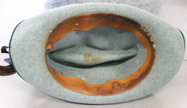 DFO CAPPELLO PER MEMBRO DEL DEUTSCHE FALKEN ORDEN (ORDINE TEDESCO DELLA FALCONERIA) SEZIONE DEL DEUTSCHE JAGERSCHAFT(ASSOCIAZIONE TEDESCA DELLA CACCIA) CHE A SUA VOLTA ERA PARTE DEL GEMEINDE FORST DIENST (SERVIZIO FORESTALE GENERALE). IN FELTRO CON BANDA IN STOFFA VERDE SCURO. FREGIO AQUILA TIPO POLITICO IN ALLUMINIO STAMPATO. COCCARDA NAZIONALE IN LEGA VERNICIATA, POSTA SU BASE IN STOFFA VERDE OLIVA CHE SERRA DEL PELO ANIMALE. CON PIUME DI RAPACE. CHIARO RICHIAMO AI COPRICAPI DA CACCIA TRADIZIONALI. ALL´INTERNO ALLUDA IN CUOIO CON TIMBRO DEL FABBRICANTE "WILKE" IMPRESSO, CON INIZIALI DEL PROPRIETARIO E VISIBILI SEGNI DI PORTO. OGGETTO RARO ED ESOTICO COME STILE. OTTIME CONDIZIONI GENERALI.€ 1000,00