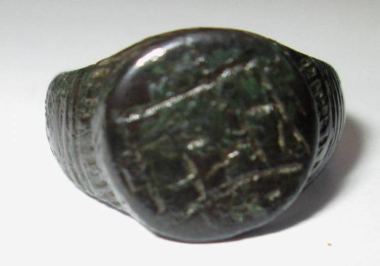 Anello Romano in bronzo con incisioni lineari sulla lunetta.