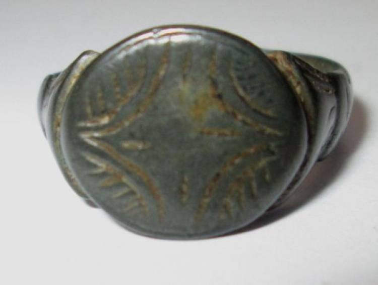 Anello Romano in bronzo con incisione a Rombo sulla lunetta.