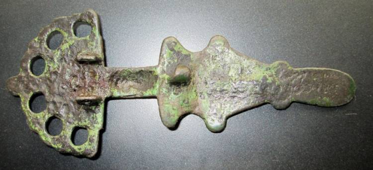 Rara Fibula/Spilla Merovingia con Testa ad Arco in Bronzo.