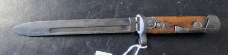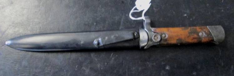 Rara Baionetta/Pugnale Pieghevole per Carcano ´91/38 I Modello. Provvista di fodero I Tipo, riverniciato. Condizioni discrete.