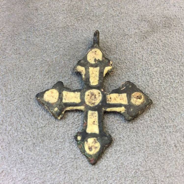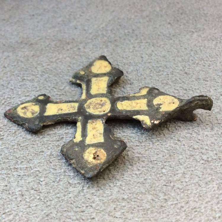 Pendente a Croce Vichingo in Bronzo e Pasta di vetro – VIII-XII sec. d.C.