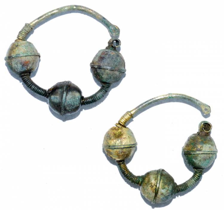 Orecchini Vichinghi in Bronzo dorato, decorati – IX-XI sec. d.C. – 4,2-4,4 cm.