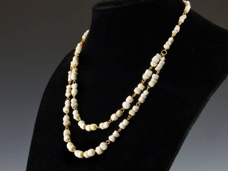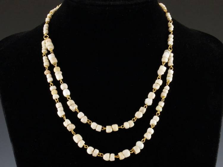 Collana Romana a doppia fila di pietre, conchiglie e faience – I sec. a.C. - III d.C. – 48 cm.