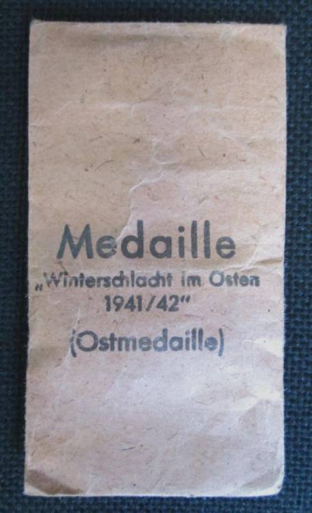 ´Medaille Winterschlacht im Osten 1941/42´ (Ostmedaille). In ottime condizioni. Completa di Nastrino e Bustina.