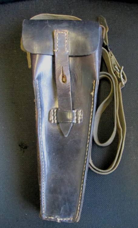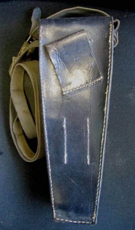 CUSTODIA IN PELLE NERA PER LANCIAGRANATE DA FUCILE K98k COMPLETA DI BRETELLA IN TELA.