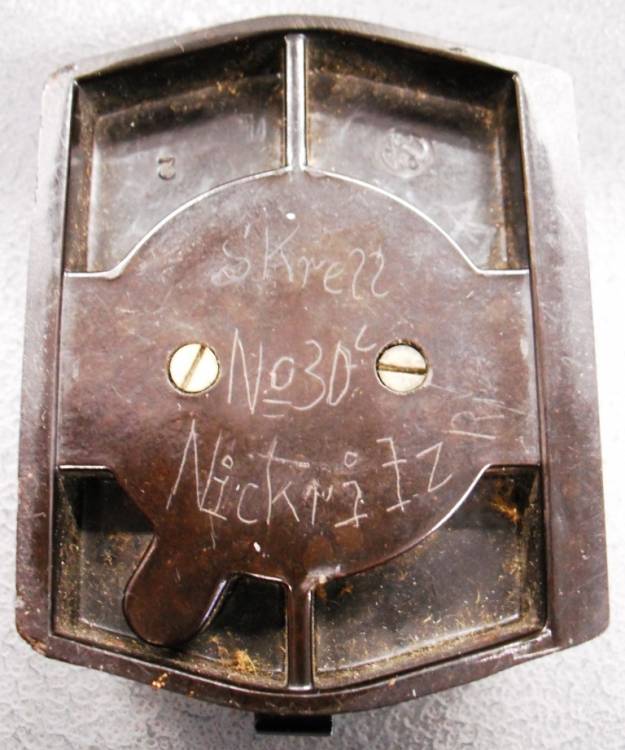 PER COMANDANTI DI SQUADRA/PLOTONE. IN BACHELITE NERA. FUNZIONAMENTO NON A FLUIDO, A SPECCHIO. MARCHIO REGOLAMENTARE SUL RETRO DELLA CASSA, CON INCISIONI DEL PROPRIETARIO. OTTIME CONDIZIONI. ORIGINALE "DA TESTO".