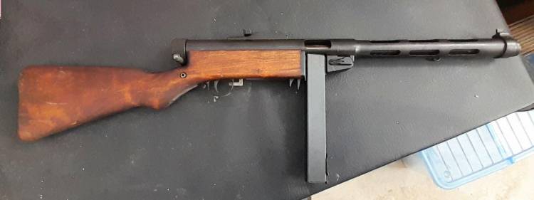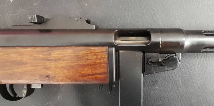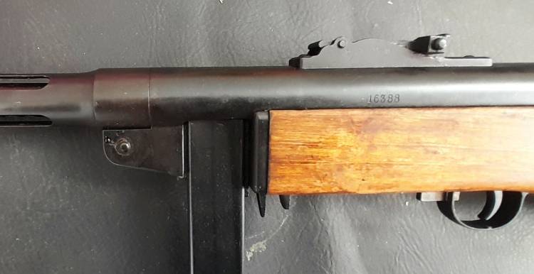 RARA PISTOLA MITRAGLIATRICE FINLANDESE SUOMI MOD. KP.31. ALL´INIZIO DEL ´42 FU INTRODOTTO UNO SPENGIFIAMMA PER STABILIZZARE IL TIRO E FU DENOMINATO KP.31/42.