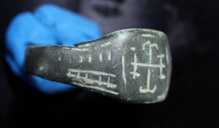 Raro Anello in Bronzo di Cavaliere Templare con Croce Patente - XI-XIV sec. d.C. (85)