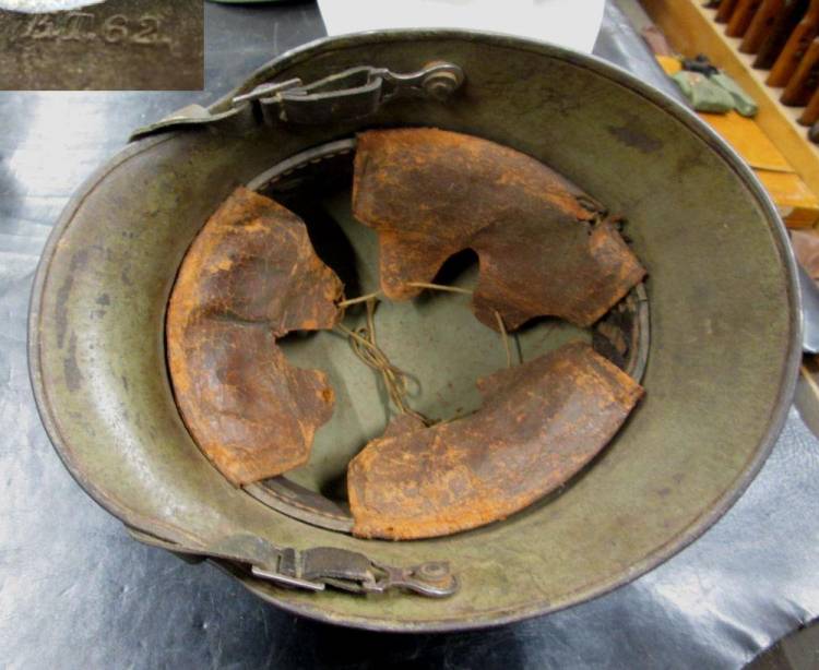 STAHLHELM M.16 CON LINER COMPLETAMENTE IN CUOIO, ANCHE IL CERCHIONE. COMPLETO. CONDIZIONI BUONE.