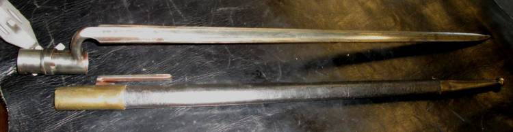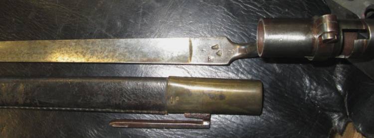 BAIONETTA CON LAMA A SEZIONE TRIANGOLARE PER FUCILE AVANCARICA ENFIELD MOD.1853. COMPLETA DI FODERO. CONDIZIONI MOLTO BUONE.
