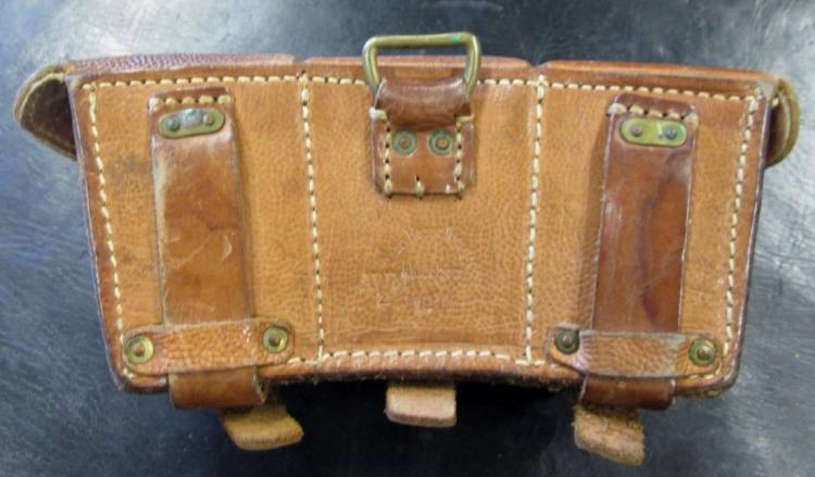 BELLA GIBERNA TRIPLA PER GEW./K.98 DELLA PRIMA GUERRA MONDIALE. CUOIO MARRONE. MARCATA CON FABBRICANTE ED ANNO (1914). CONDIZIONI ECCELLENTI.