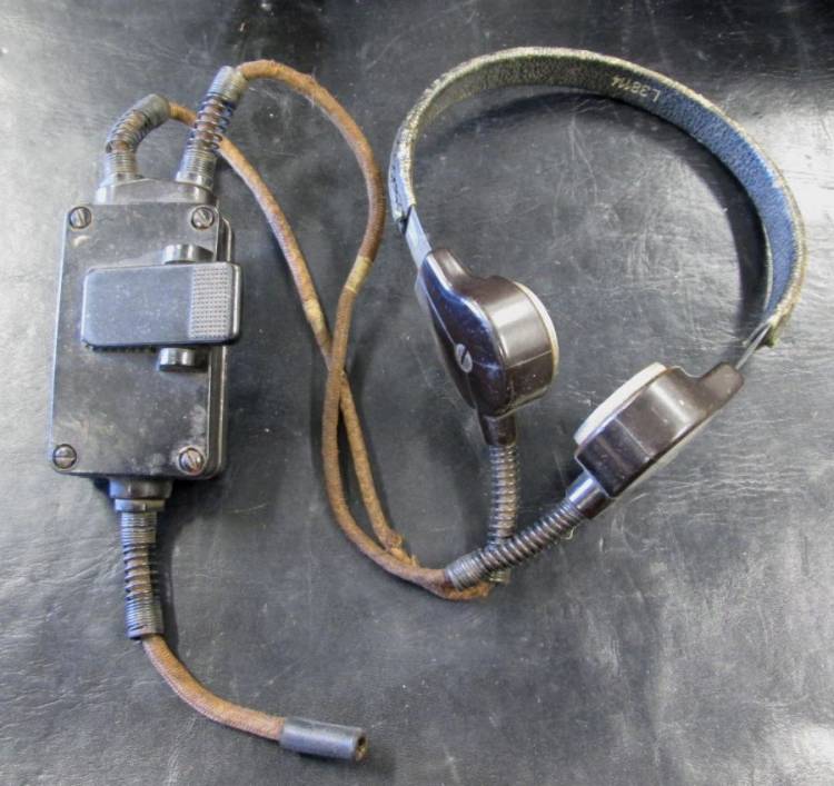 LARINGOFONI CON COMANDO PER COMUNICAZIONI RADIO DI UN CAPOCARRO MEZZI CORAZZATI. CONDIZIONI MOLTO BUONE.