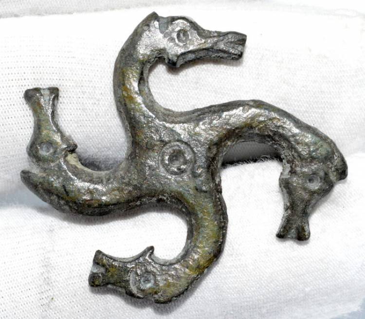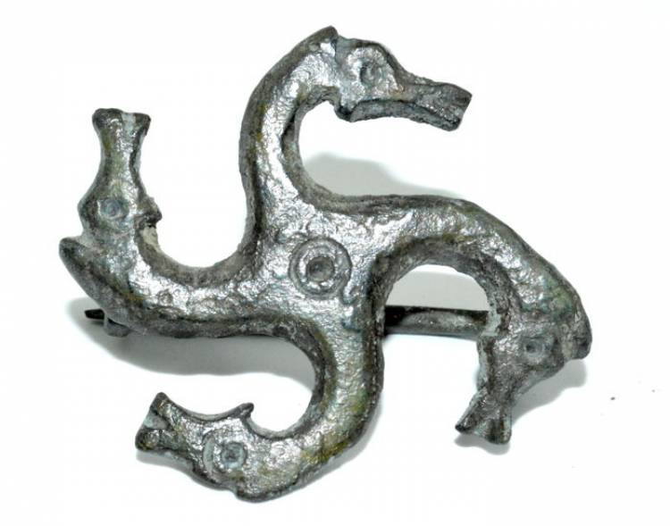 Fibula ‘a Svastica’ Romana in Bronzo con Teste di Cavallo – II-III sec. d.C. (283)