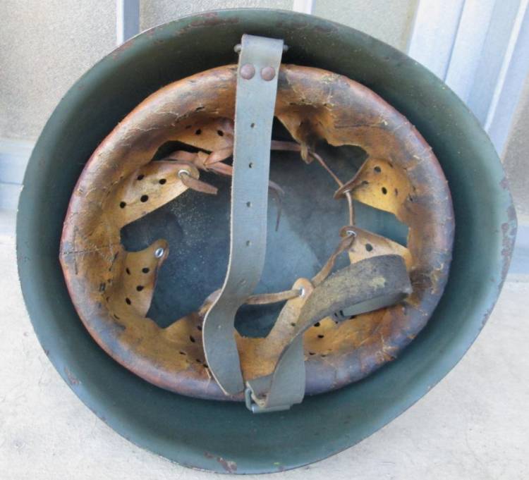 RIVETTI A 8 RAGGI E FASCIONE IN ACCIAIO (PRODOTTO IN PERIODO BELLICO). CUOIO CON CUCITURA A ´Z´.