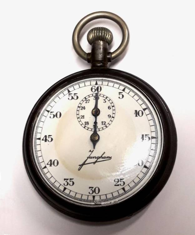 Cronografo ´Junghans 29a´, calibro 50, con 2 coperchi in bronzo - nichelato, verniciato scuro.