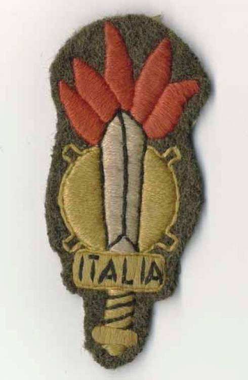 Brevetto da braccio in stoffa dei Guastatori del Genio della Repubblica Sociale Italiana. Il fregio era uguale per tutti i gradi ed è composto da un gladio romano bianco sovrapposto ad una bomba sferica, con cinque lingue di fuoco rosse. Sulla guardia del gladio c´è la scritta ´ITALIA´ (o ´ONORE´). I Guastatori del Genio erano inquadrati in tre battaglioni.