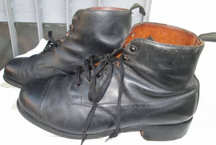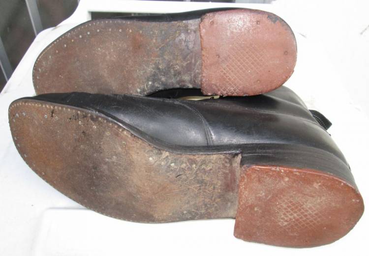 RARI SCARPONCINI DI SERVIZIO PER TRUPPA E UFFICIALI. USATI IN PARTICOLARE DAI SOMMERGIBILISTA. IN CUOIO NERO, HANNO IL TACCO IN CUOIO MARRONE ANTISCIVOLO. ALLACCIATURA A 3 FORI E 4 GANCI. CONDIZIONI MOLTO BUONE.