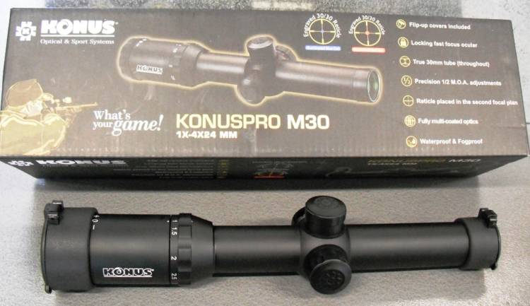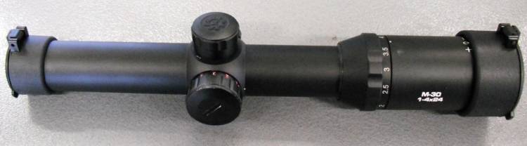 1-4X24 ZOOM. MONOTUBO ALLUMINIO DA 30mm. RETICOLO 30/30 INCISO E ILLUMINATO (ROSSO E BLU). ILLUMINATO CON 5 REGOLAZIONI PER COLORE. TORRETTE DI REGOLAZIONE 1/4 M.O.A. WATERPROOF, SHOCKPROOF, FOGPROOF. RETICOLO POSIZIONATO NEL 2°PIANO FOCALE. MESSA A FUOCO SULL´OCULARE BLOCCABILE. RUOTA DI CORREZIONE DELLA PARALLASSE. BOLLA DI LIVELLO INTERNA. COMPLETA DI TUBO PARASOLE E COPERCHI IN PLASTICA FLIP-UP. NUOVA.