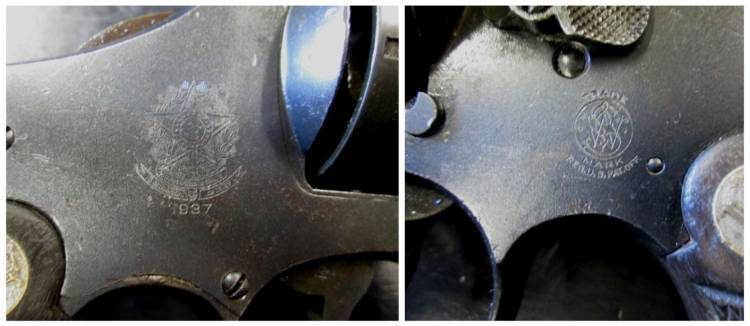 RARO REVOLVER MOD. 1917 IN CAL.45 ACP PRODOTTO DALLA SMITH & WESSON NEL 1937 PER L´ESERCITO BRASILIANO IN SOLI 25.000 ESEMPLARI. IDENTICO A QUELLO PRODOTTO NELLA PRIMA GUERRA MONDILE PER L´ESERCITO AMERICANO. ARMA IN DOTAZIONE AGLI UFFICIALI BRASILIANI NEL CORPO DI SPEDIZIONE IN EUROPA NELLA SECONDA GUERRA MONDIALE.