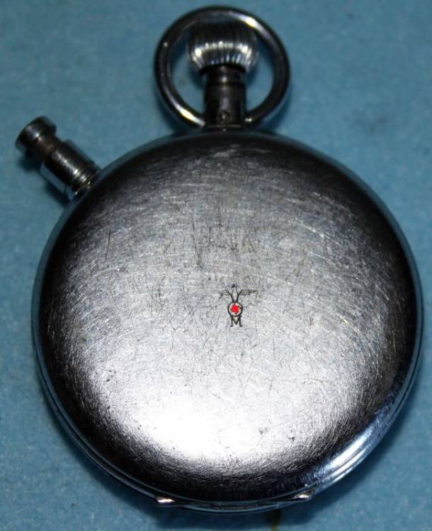 RARO CRONOGRAFO DELLA KREIGS MARINE III REICH PER LA MISURAZIONE DEL TEMPO DI IMPATTO DEI SILURI NEGLI U-BAOT. PRODOTTO DALLA ´HANHART´, E´ MARCATO CON IL WaA DELLA KM. SUL QUADRANTE RIPORTA LA SCRITTA ´Hanhart´ E ´Anker 13 Sterne´.