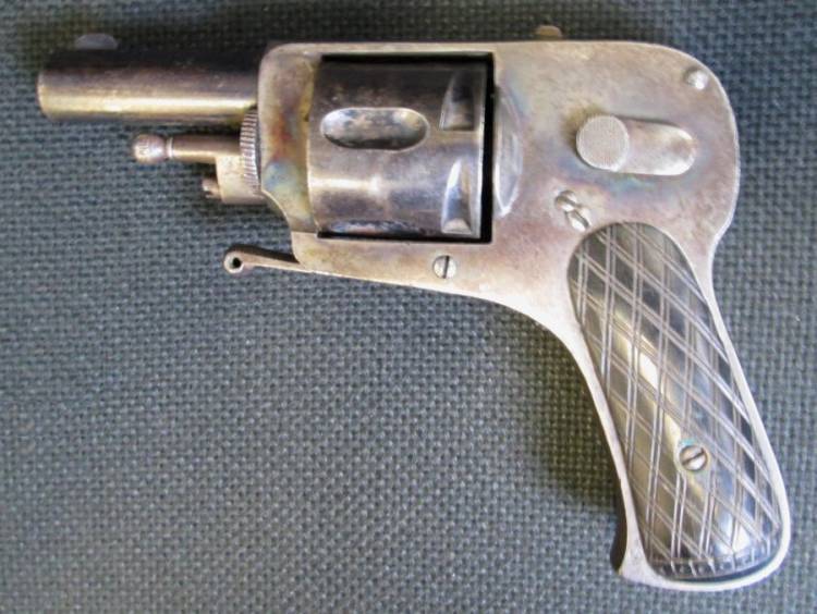 PICCOLO REVOLVER A PERCUSSIONE CENTRALE A CANE INTERNO IN CAL. 8 mm. PUNZONI DI LIEGI.